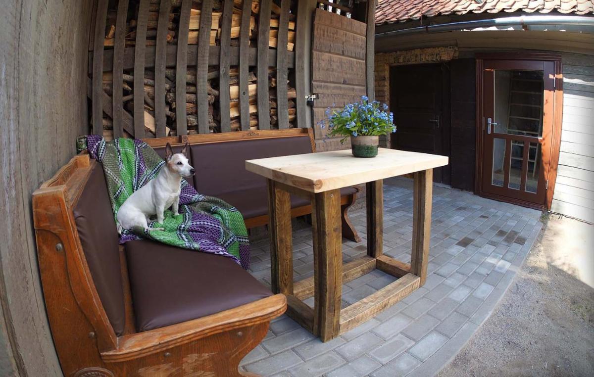 一个美好的住宿。一个安静的地方的木制花园房屋。它有2张床,一张大,一张小床。壁炉,使房间温暖而舒适。