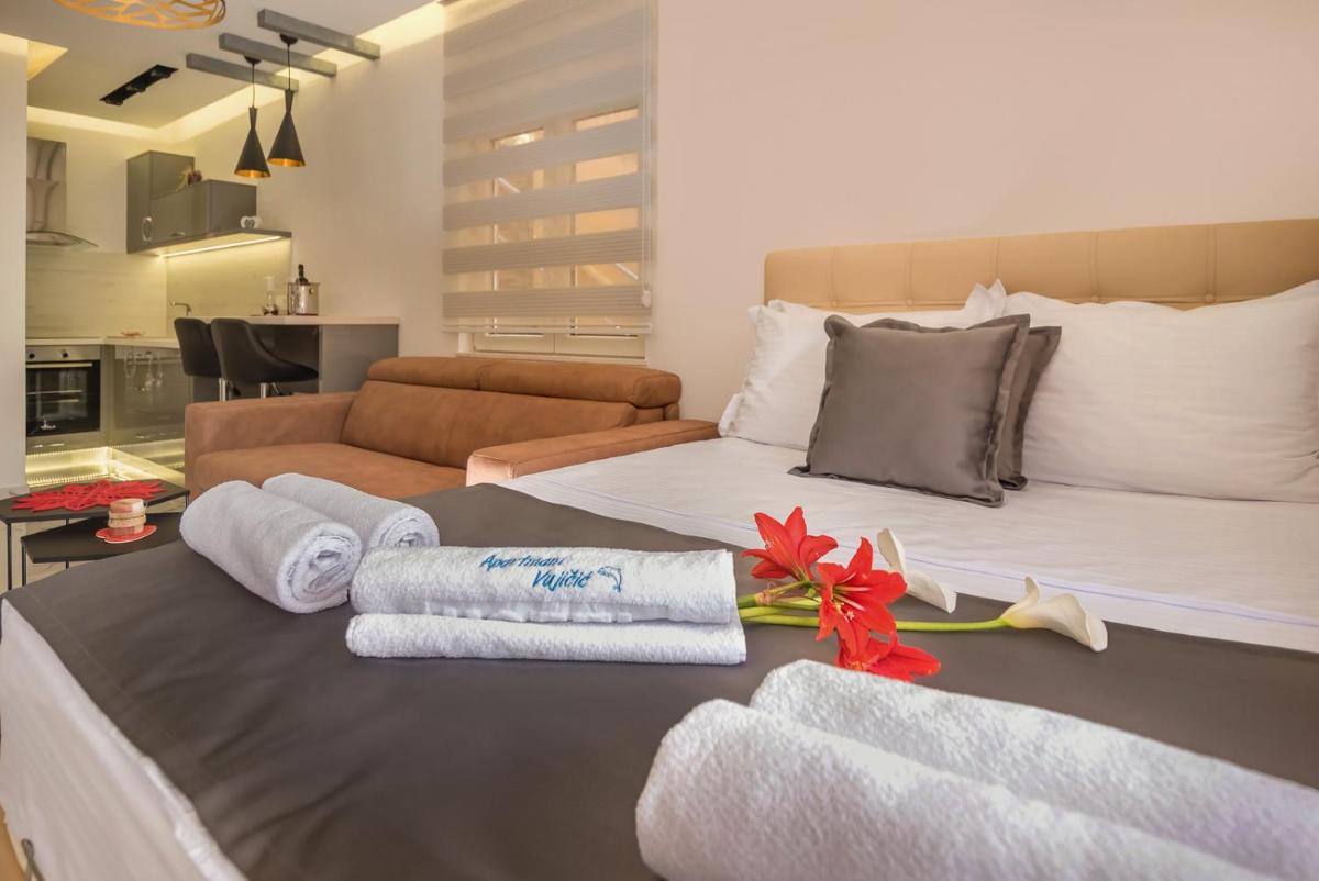 位于蒂瓦特(Tivat)的公寓维吉奇(Vujicic)设有设备齐全的住宿,设有阳台,免费的私人停车场和免费的Wi-Fi。客人欣赏物业描述和照片的准确性。该公寓享有花园的壮丽景色,包括24小时前台,儿童游乐场和游泳池等设施。每个单元都配备了床单和毛巾,可以舒适地住宿。