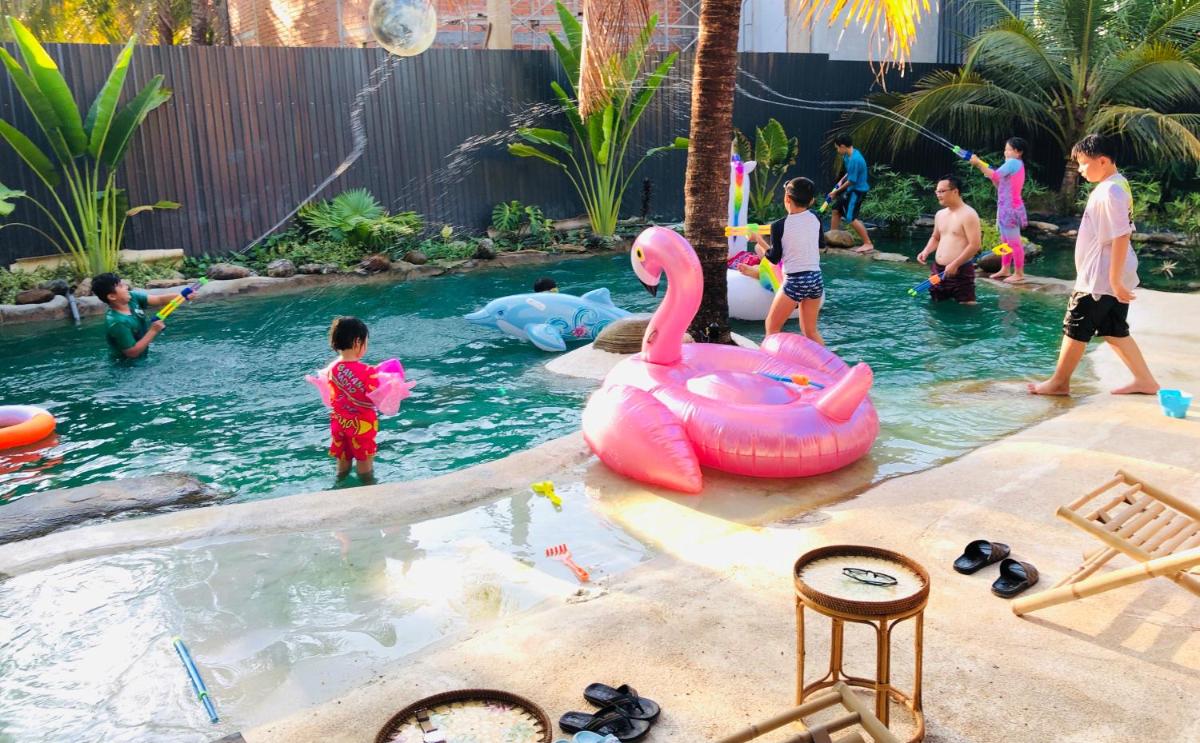 Cóc静修会设置在我的Tho中,可提供带有座位区的住宿。该住宿享有花园景观,设有阳台和游泳池。有一个阳光露台,客人可以使用免费的WiFi和免费的私人停车场。