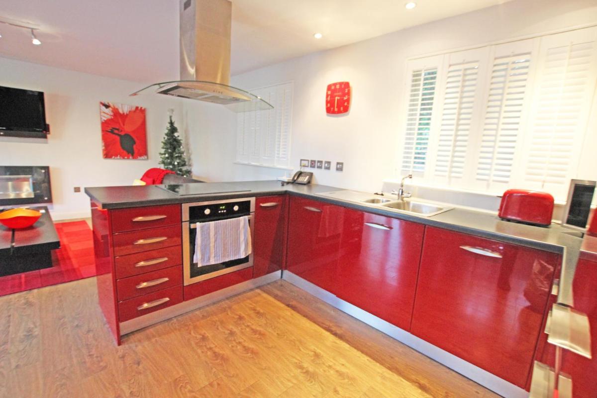 借助免费的WiFi,这间一居室度假屋提供了平面电视,洗衣机和设备齐全的厨房,配有洗碗机和烤箱。毛巾和床单在假日家中提供。