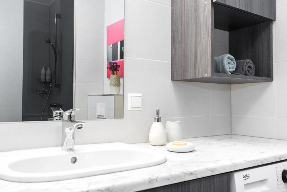 优越的地理位置。设备齐全的公寓 - 从厨房到浴室。舒适的5人。拉出沙发有卷起的床垫. . .