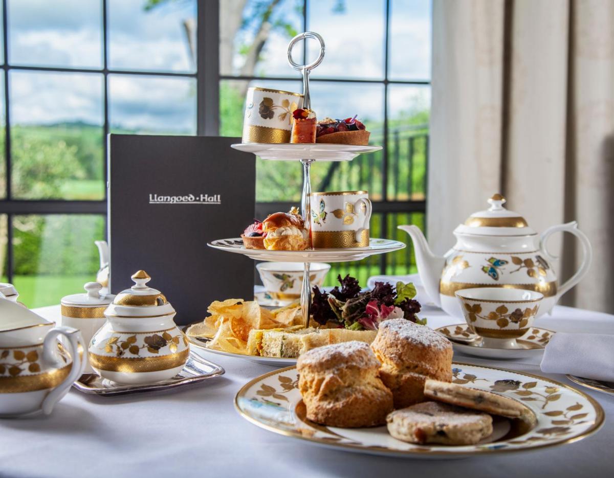 Llangoed Hall的2个AA Rosette餐厅提供了一份精美的菜单,其中包括当地采购的农产品,包括酒店自己的有机花园的水果和蔬菜。晚餐,住宿加早餐率包括三道菜的选择菜单。