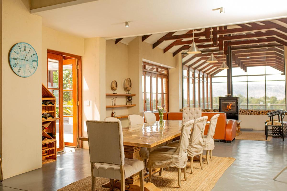 Vetho Farmhouse Dullstroom坐落在距离Dullstroom火车站4. 9公里处,拥有令人印象深刻的山景和宁静的氛围,非常适合放松。这种豪华的住宿包括露台,游泳池和水疗设施,提供现代设施和质朴的魅力。客人将欣赏免费的Wi-Fi,充足的停车场以及为舒适而设计的单元。享受一个宁静的静修,周围是大自然,并有户外活动的机会,例如远足和观鸟。