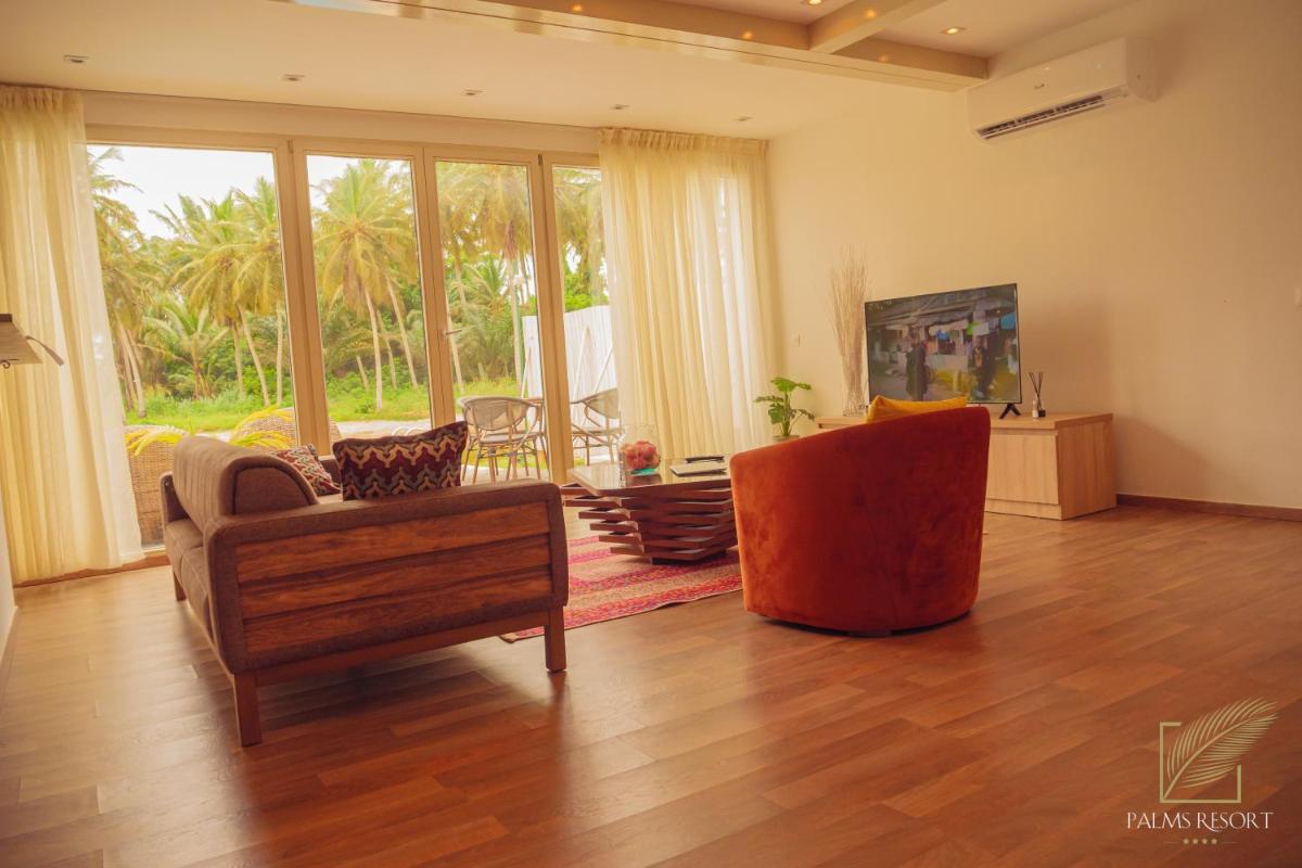 Palms Resort Assinie的每个客房都散发着奢华和舒适的舒适感,包括空调环境,豪华的座位区,平面电视,可访问各种娱乐频道,设备齐全淋浴。额外的好处包括每个房间中的咖啡机,从而增强了整体款待体验。