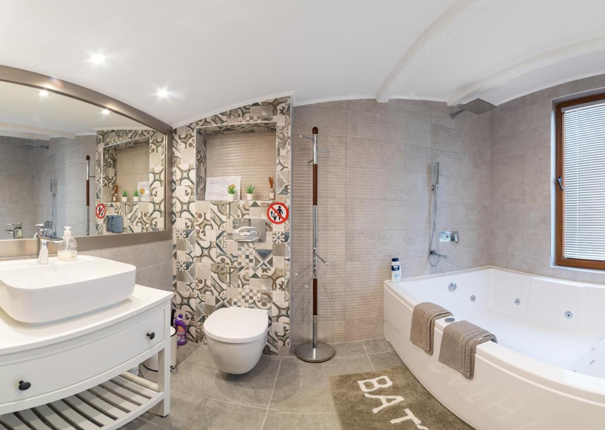 Sunny House Izgrev是一栋迷人的别墅,距离巴尔奇克(Balchik)的阿尔贝纳中央海滩(Albena Central Beach)仅1. 4英里,拥有豪华住宿,可通往水疗设施。该物业提供免费的私人停车场,免费的Wi-Fi和阳台。由于它靠近地中海,客人们享受着宁静的氛围,可欣赏泳池区和海洋本身的壮丽景色。这座别墅凭借其宽敞的布局,可容纳多达四个人,拥有多个卧室,设备齐全的厨房和现代设施,例如卫星式屏幕屏幕电视,隔音环境和壁炉。