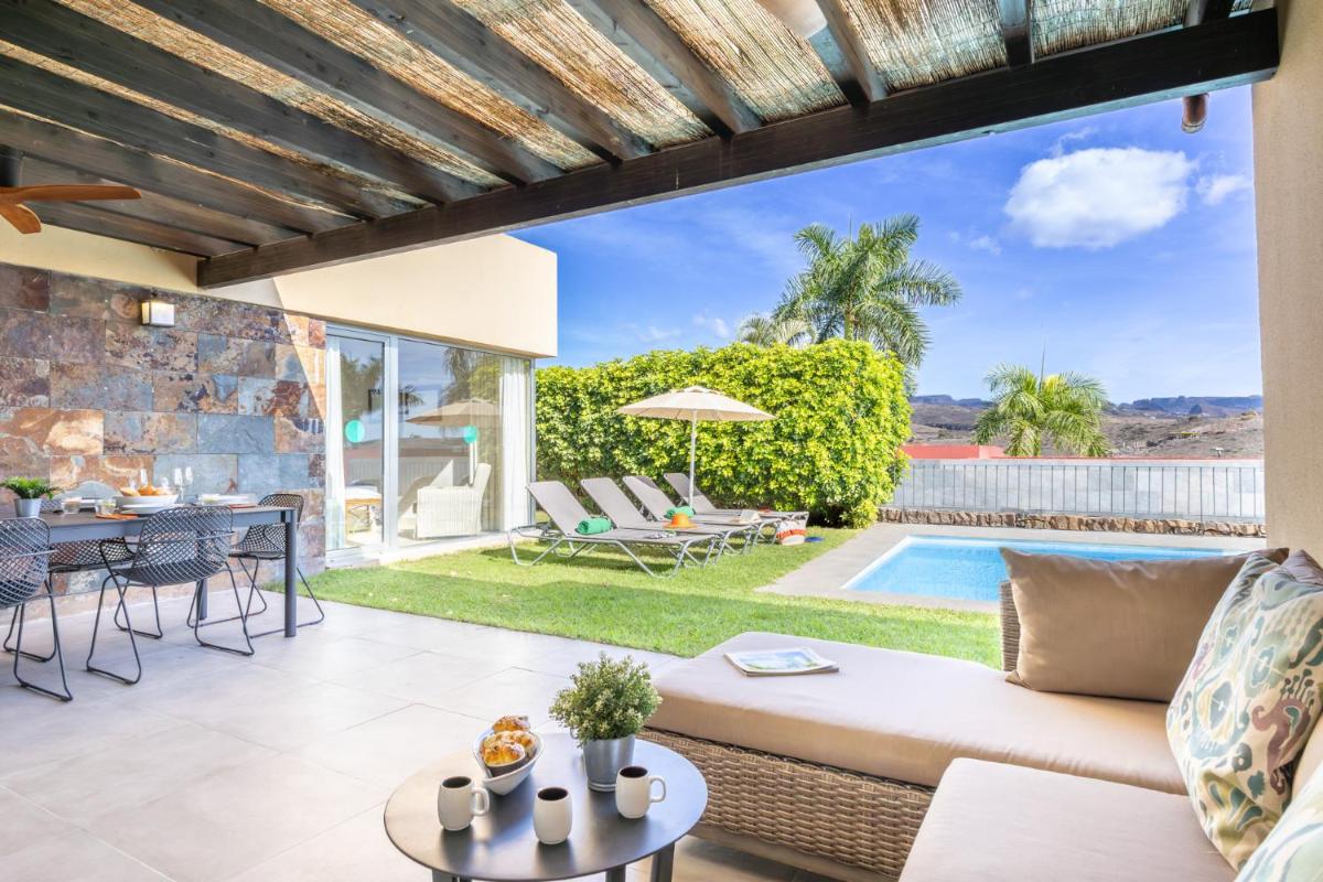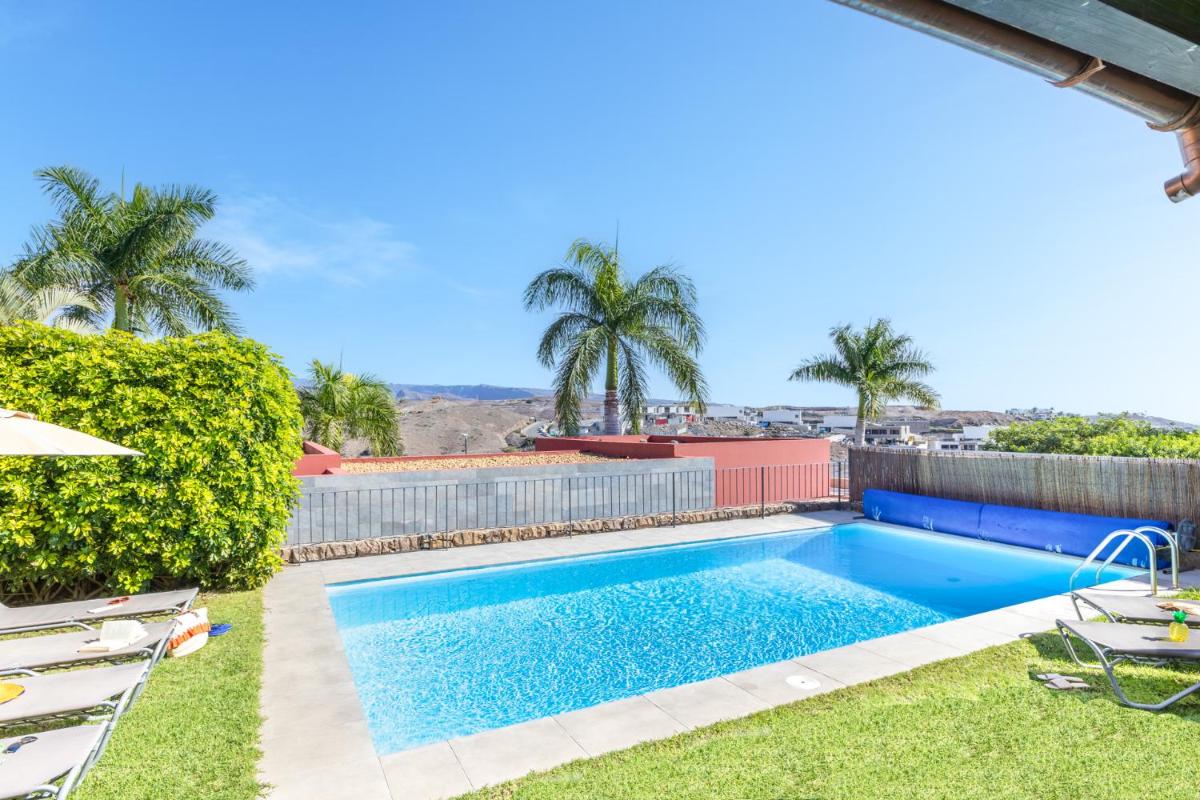 Villagrancanaria的Holiday Home Jacana设有一个宽敞的花园,设有私人露台,免费的私人停车场,免费的Wi-Fi,一个户外游泳池,一个晒日光浴的区域,不吸烟的房间,家庭房,设备齐全的厨房和两个浴室。